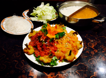 Poulet au curry, boeuf oignons et crevettes pékinoises